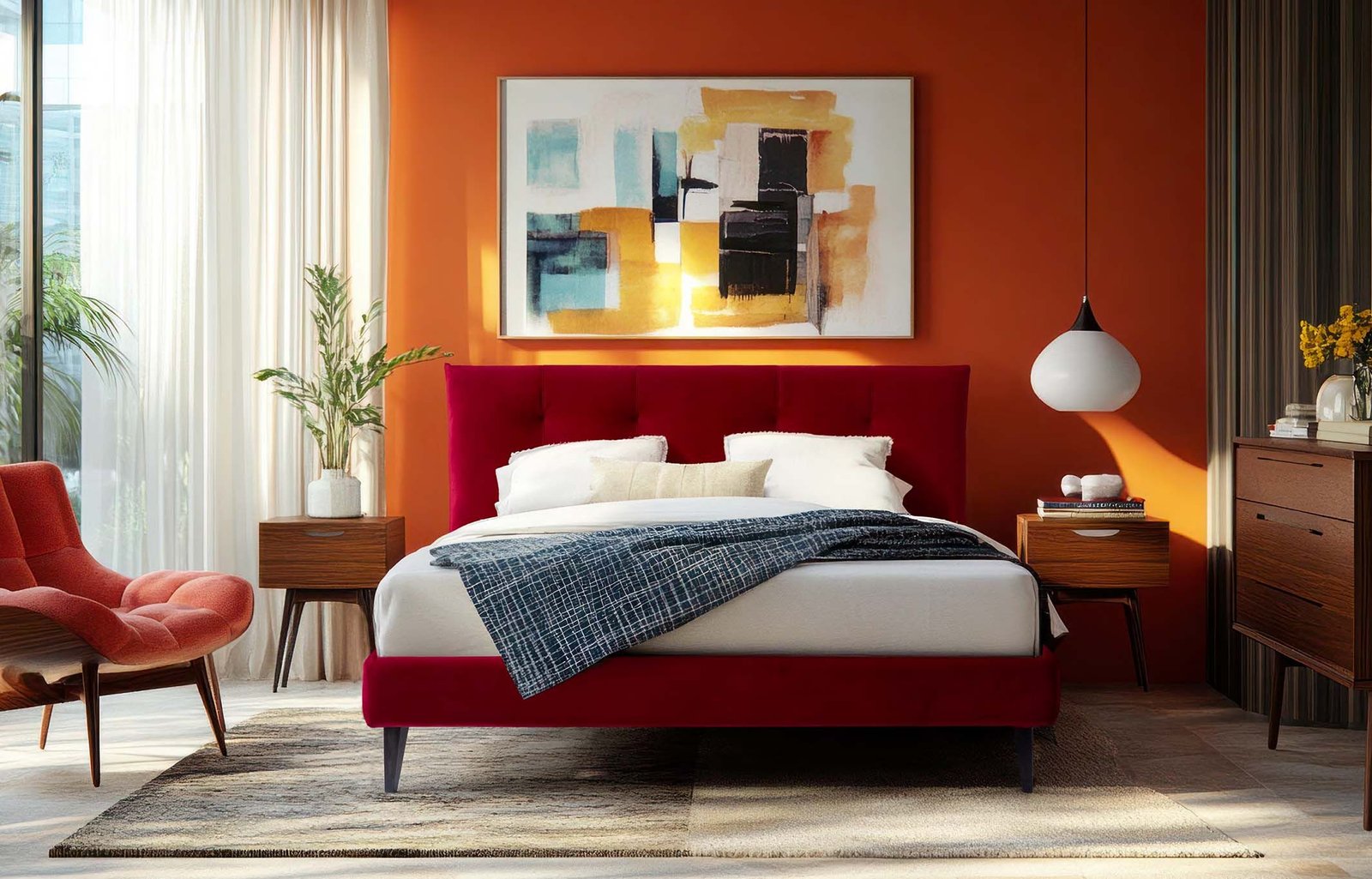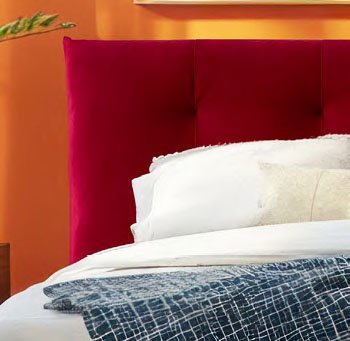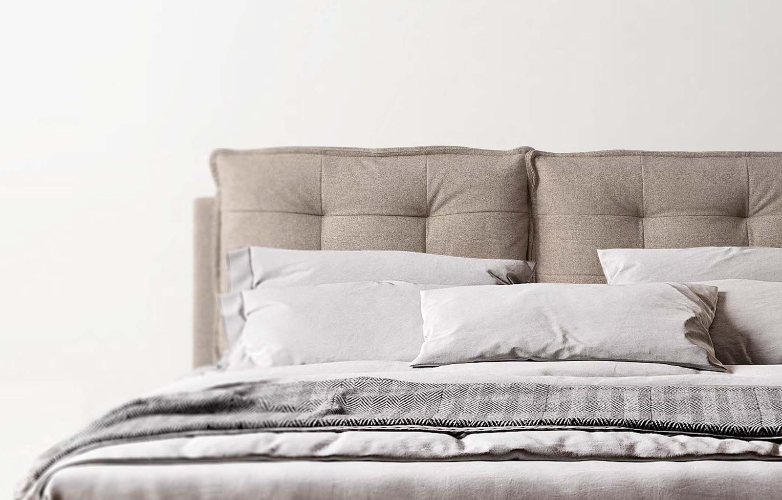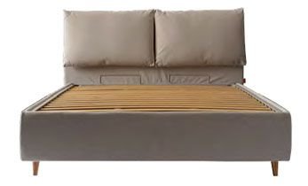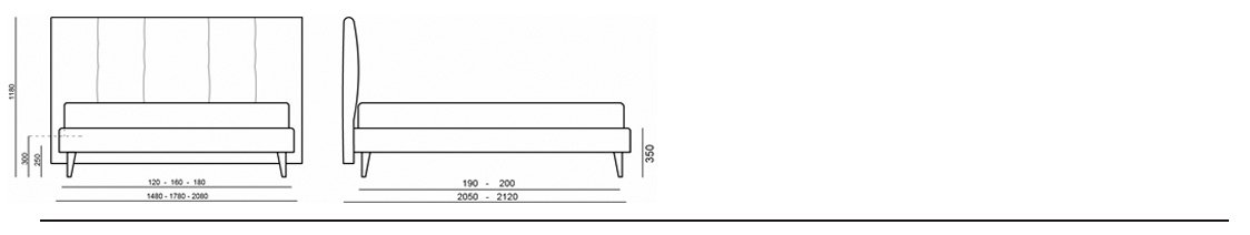 La sua testata suddivisa in due cuscini imbottiti dona comfort e movimento visivo, creando una soluzione ideale per chi ama rilassarsi o leggere a letto.