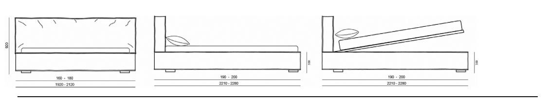 La doppia testata imbottita offre un comfort superiore, ideale per chi ama rilassarsi. Il giroletto imbottito, solido e ben proporzionato, ospita un ampio contenitore, una soluzione pratica per ottimizzare lo spazio senza rinunciare all’estetica.