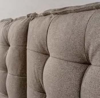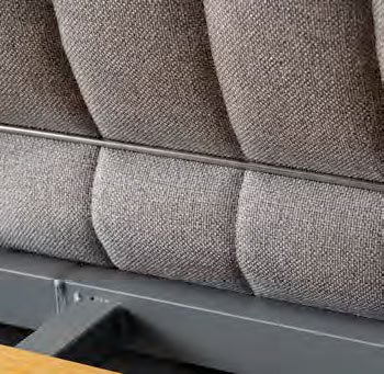 La testata imbottita è dotata di due ampi cuscini reclinabili, ideali per garantire una postura ottimale durante la lettura o per godersi momenti di relax in posizione inclinata. May Fair offre inoltre la possibilità di personalizzazione grazie a due ulteriori varianti di cuscini: uno con un’elegante trapuntatura capitonné, dal sapore classico e sofisticato, l’altro con una trapuntatura centrale che dona un tocco moderno e sobrio.