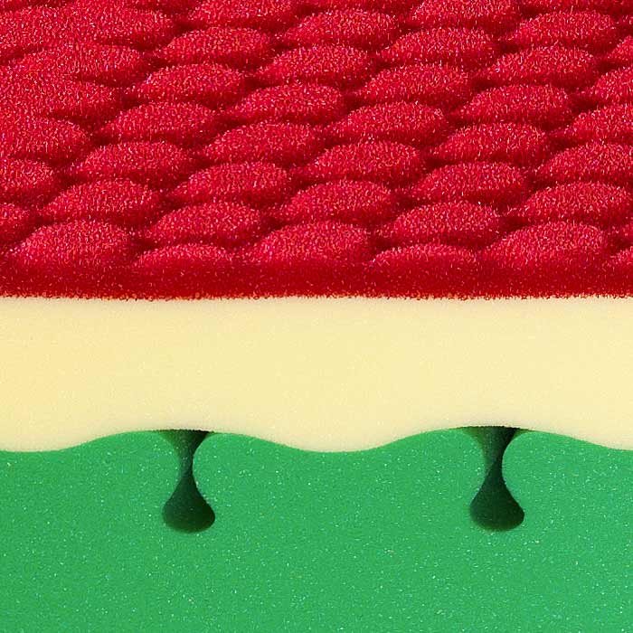 PARTICOLARE DELLA LASTRA MEMORY A ONDA A 5 ZONE SPESSORE 5 CM. DENSITA’ 40 Kg. M3. KPA 2 INDEFORMABILE.
