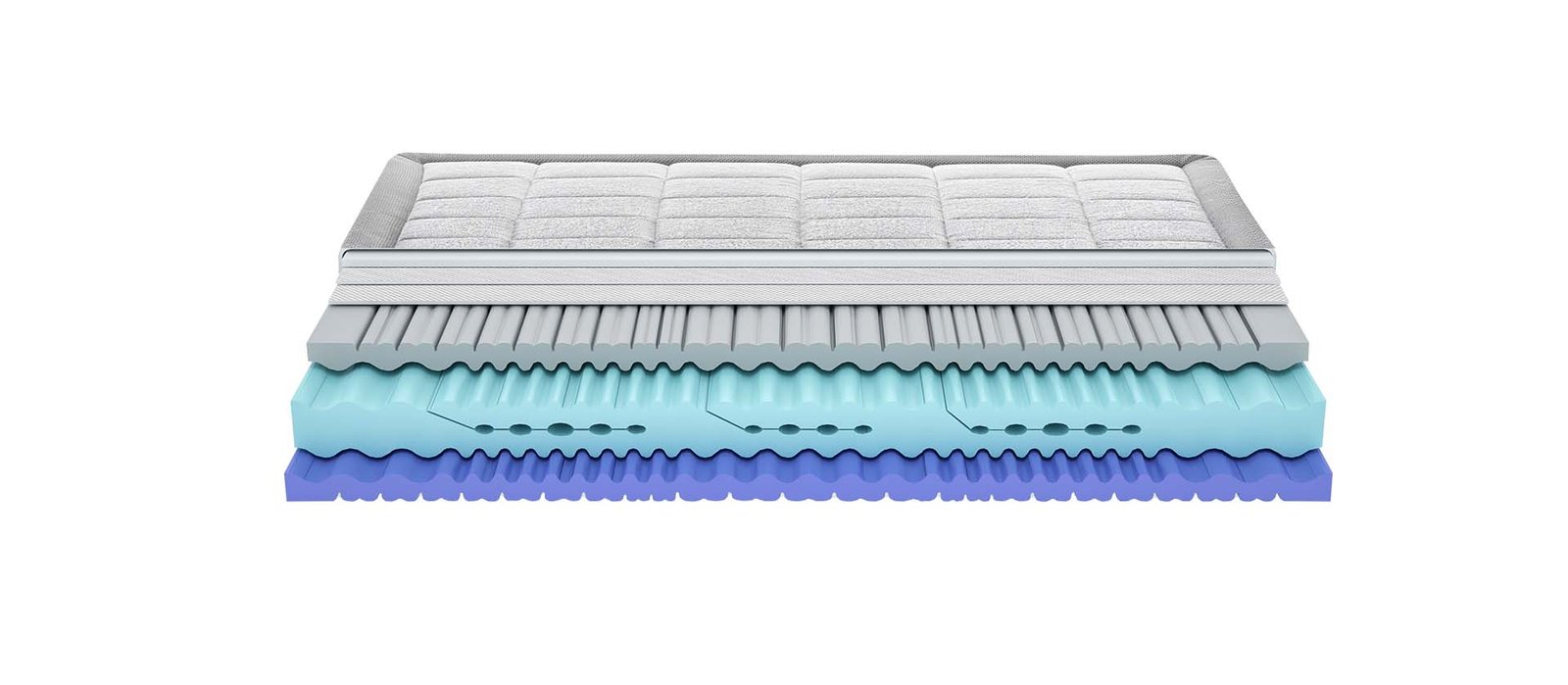 Dalla fusione di acqua e aria con polimeri innovativi e di tecnologia avanzata nasce AQUATERM, uno dei più avanzati materiali per le strutture interne dei materassi. AQUATERM è un prodotto di una elasticità unica nel suo genere. La struttura molecolare a celle aperte comunicanti, permette la libera circolazione dell’aria. La continua circolazione dell’aria tra gli spazi delle cellule assicura un totale microclima che diventa indispensabile per un perfetto riposo, con una deumidificazione costante e controllata. AQUATERM ci ha permesso di realizzare materassi ergonomici che si modellano intorno al nostro corpo in maniera graduale e differenziata.