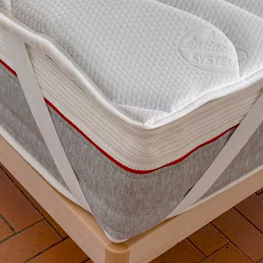 Fissaggio al materasso con elastici posizionati nei quattro angoli.